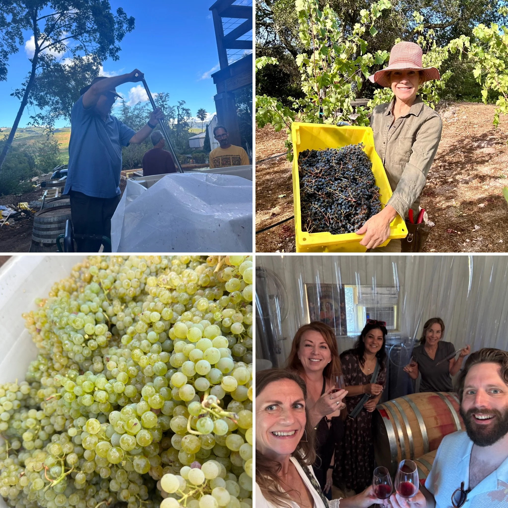 /Hello, October! September was a wonderfully busy month filled with the harvest, the start of a new school year, and welcoming visitors from as far away as New York, Chicago, and Arizona. Some guests enjoyed casual tastings on our sunny patio, while others were eager to dive deeper and learn about the wine-making process. Because we’re a small, family-run winery and do everything by hand, visitors have the unique opportunity to taste wine straight from the barrels. They even tried their hand at “punch downs,” which involves mixing the must—the combination of red grapes, juice, skins, and seeds—to draw out vibrant color and develop flavor during fermentation.